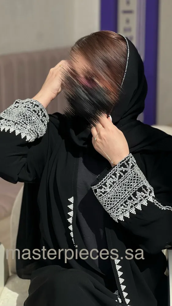 عباية مخمل بتطريز سدو لون زهر