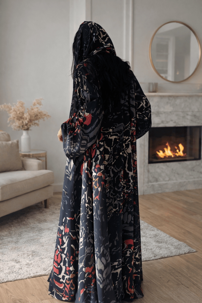 عباية شيفون حرير بتشجيرة