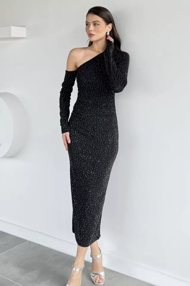 الموديل ترتدي مقاس S – الطول 175 سم، الصدر 85 سم، الخصر 62 سم، الورك 91 سم
