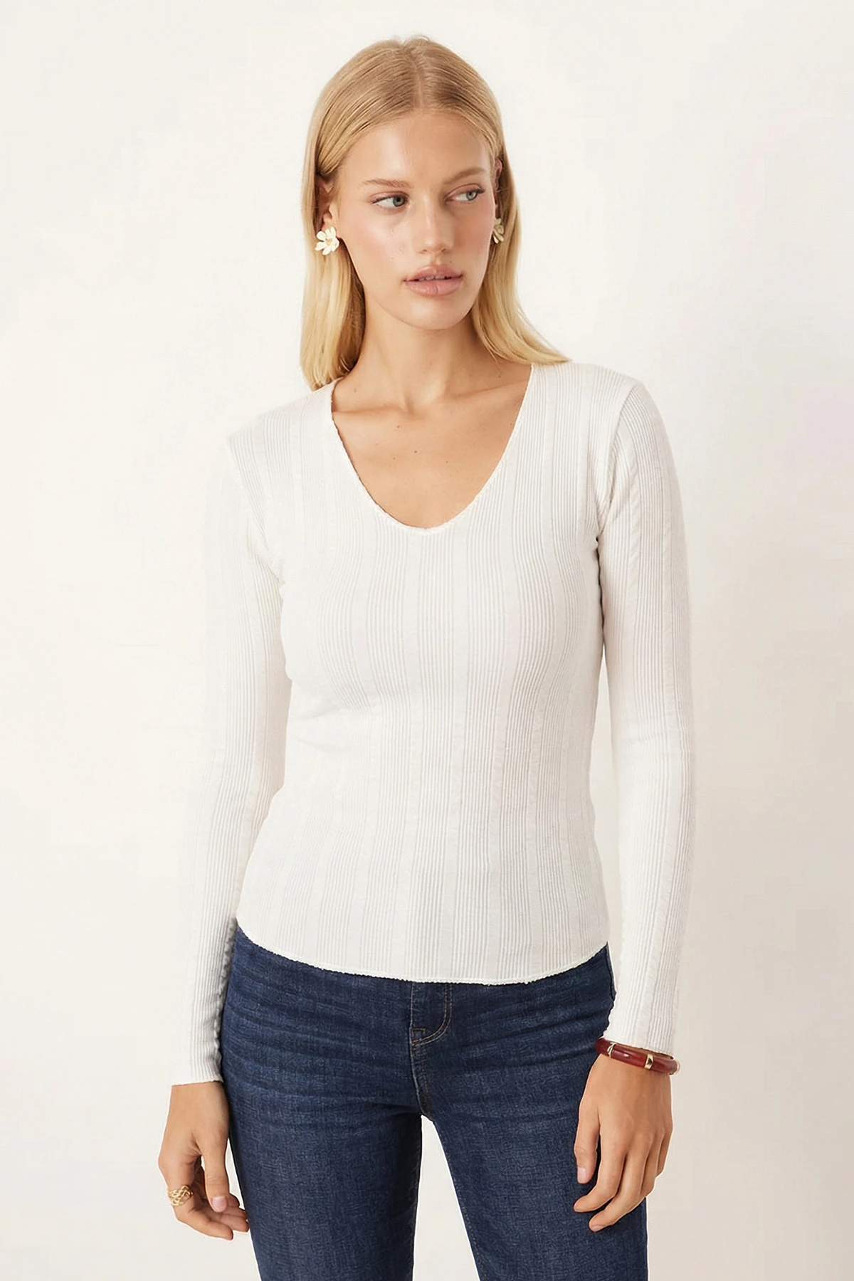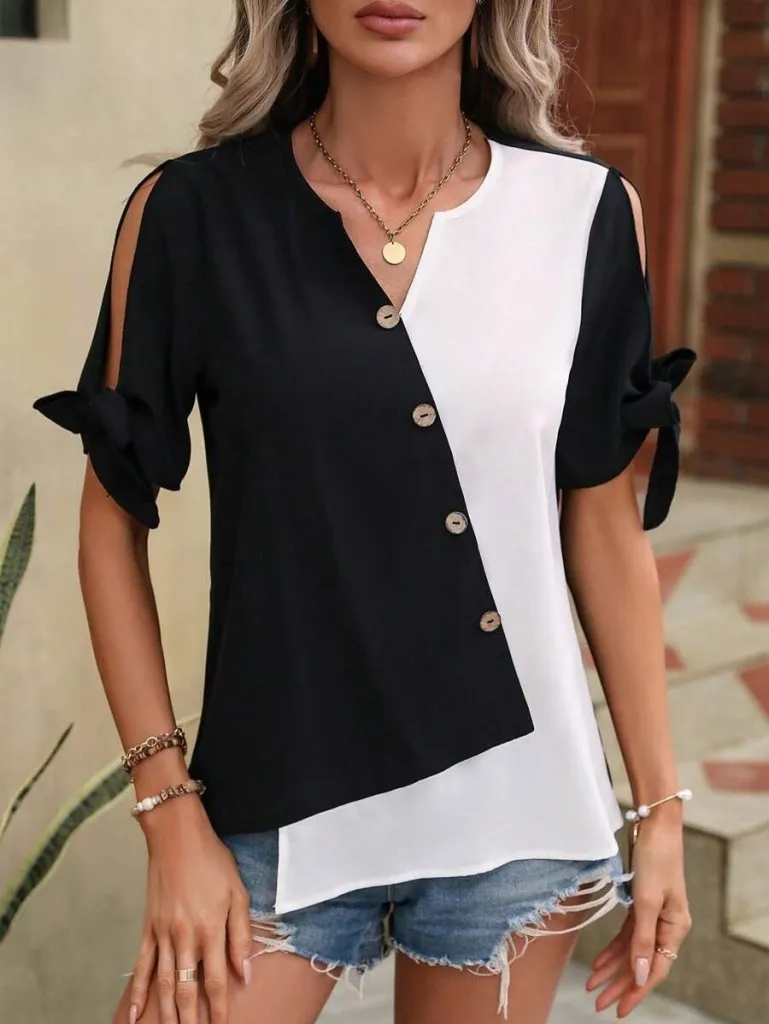 بلوزة اوفرسايز بياقة V مع شقوق جانبية وظهر اطول