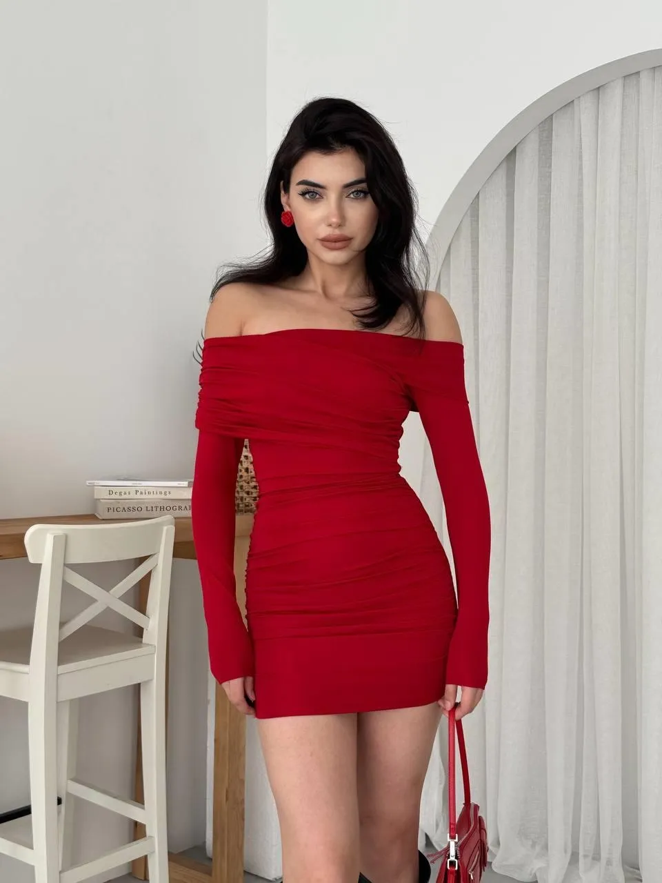 فستان قصير بنقشة منقوشة بياقة V وتفاصيل كشكش بقصة A خفيفة تعطي ستايل ناعم ومناسب للاستخدام اليومي.
