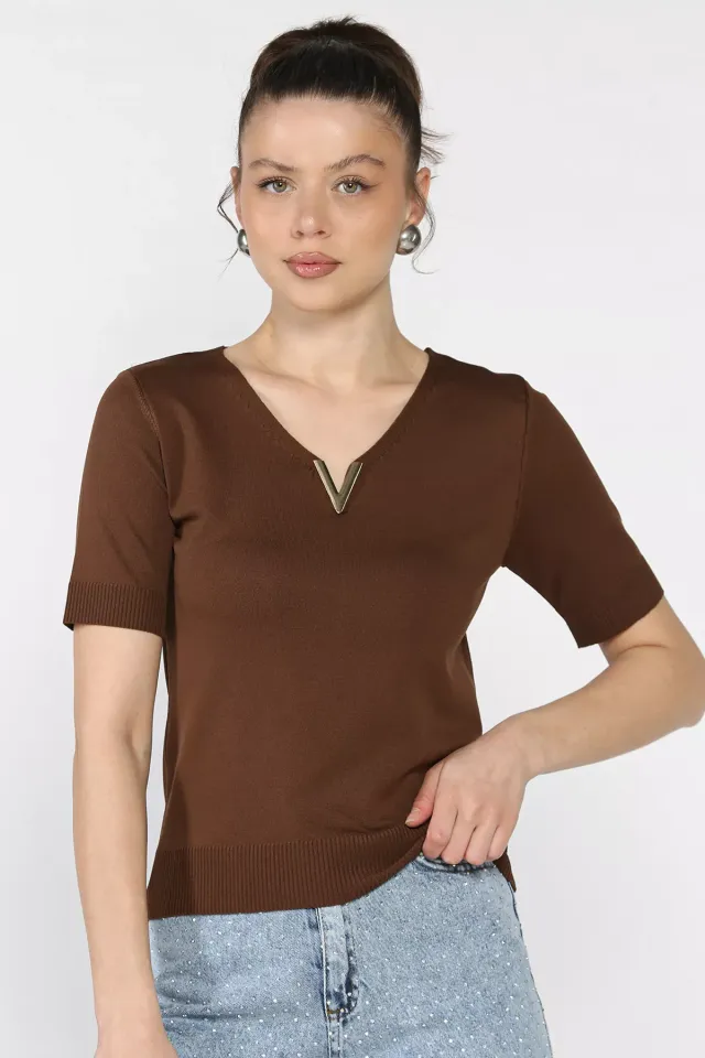 بلوزة مريحة بياقة V واكمام كشكش تعطي لوك كيوت وناعم بستايل عصري مناسب للاطلالات اليومية الصيفية.