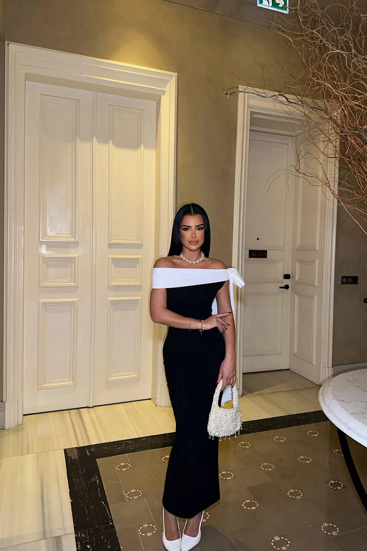 فستان قصير بنسيج ناعم وياقة قارب وأكمام خفاش بقصة مريحة يعطيك لوك يومي بسيط وأنيق.