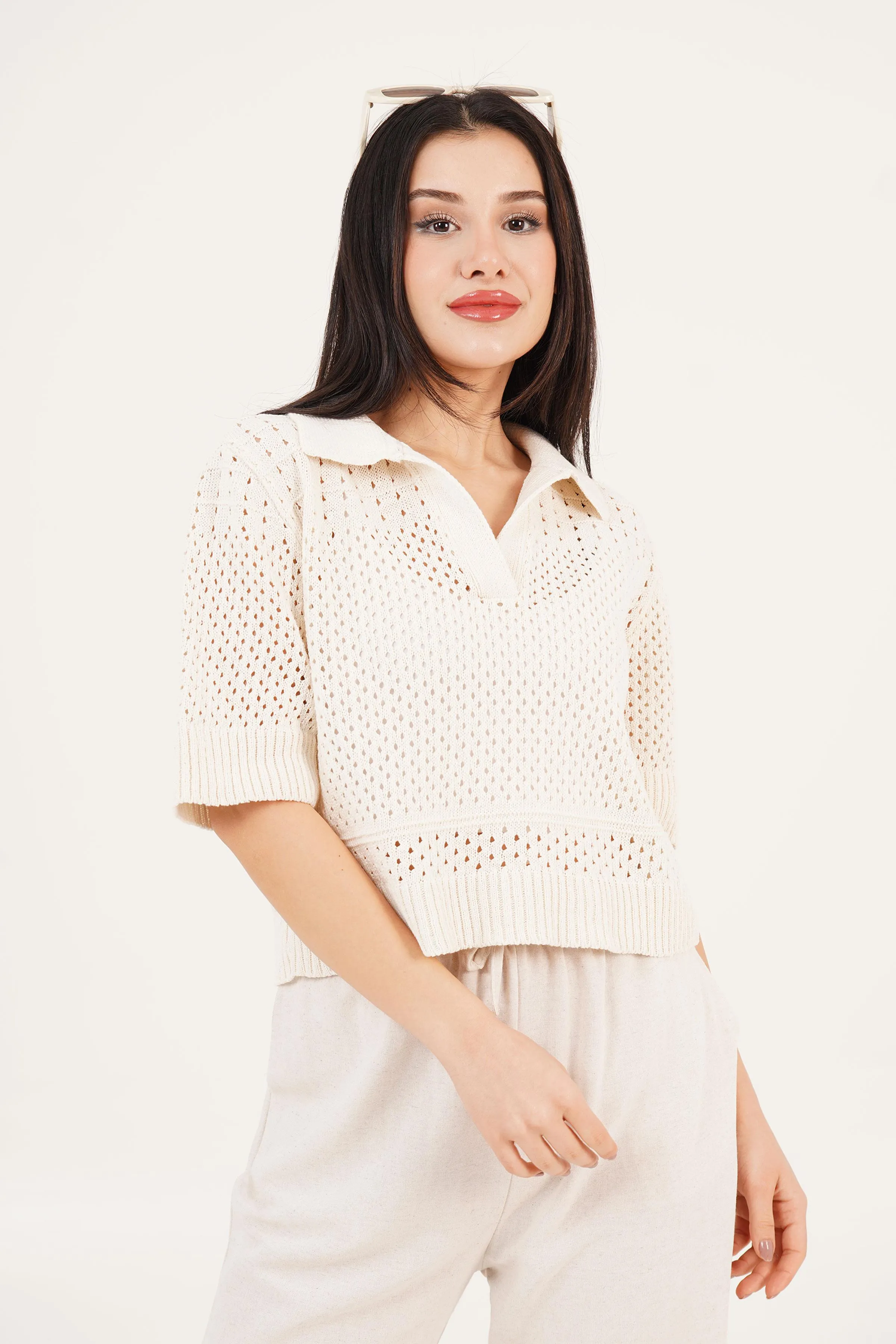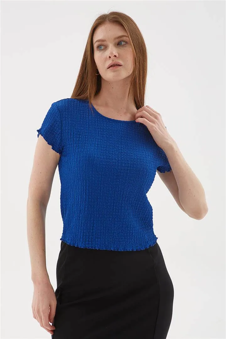 بلوزة قصيرة كيوت ومريحة بياقة قارب وتفصيل سحاب تعطي لوك عصري وقصة محددة لاطلالات يومية تريند.
