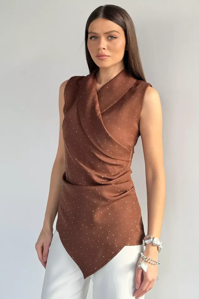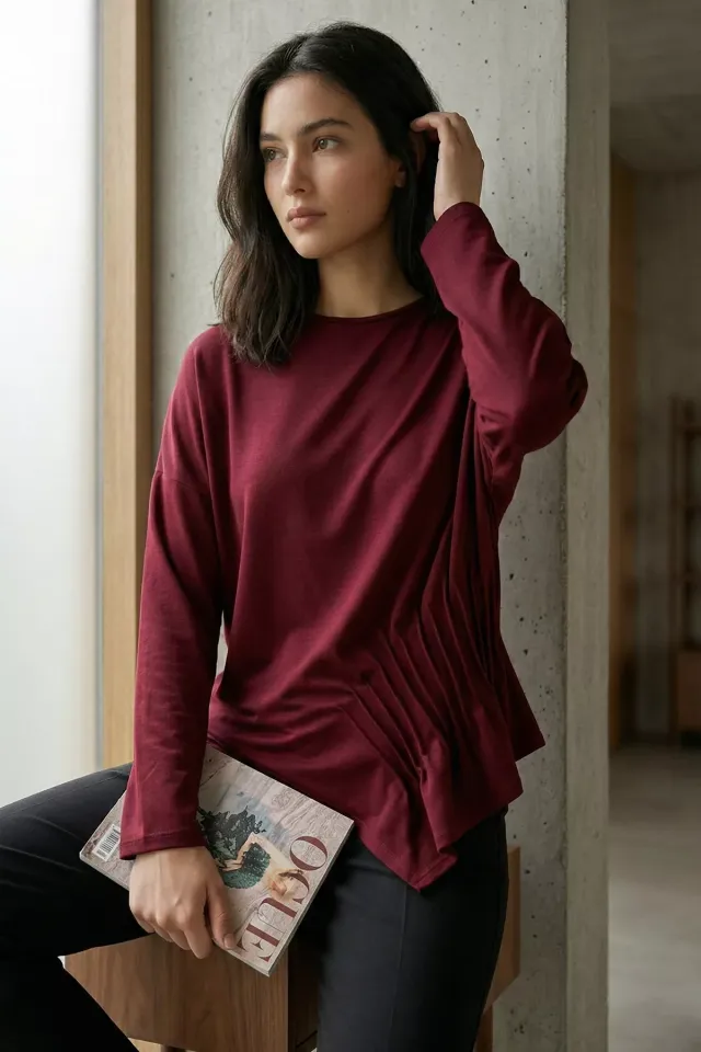 بلوزة قصيرة كيوت ومريحة بياقة قارب وتفصيل سحاب تعطي لوك عصري وقصة محددة لاطلالات يومية تريند.
