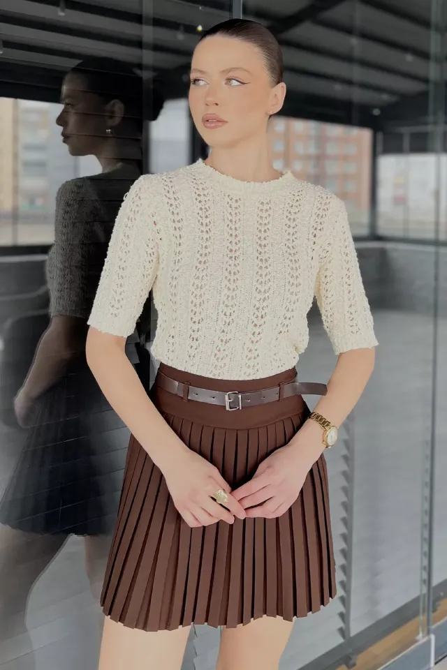 الموديل ترتدي مقاس S – الطول 175 سم، الصدر 85 سم، الخصر 62 سم، الورك 91 سم