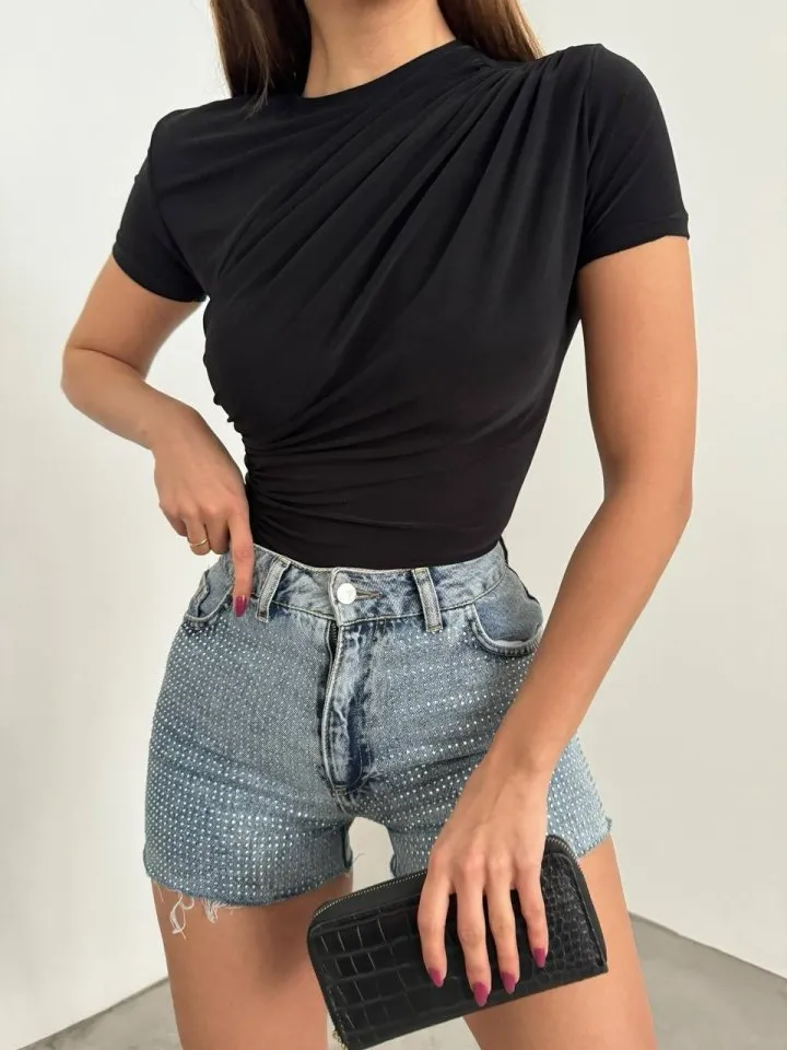 بلوزة كيوت بياقة V وتفاصيل كشكش مع كم الفراشة تعطي لوك انيق وناعم مناسب للاطلالات اليومية الصيفية.