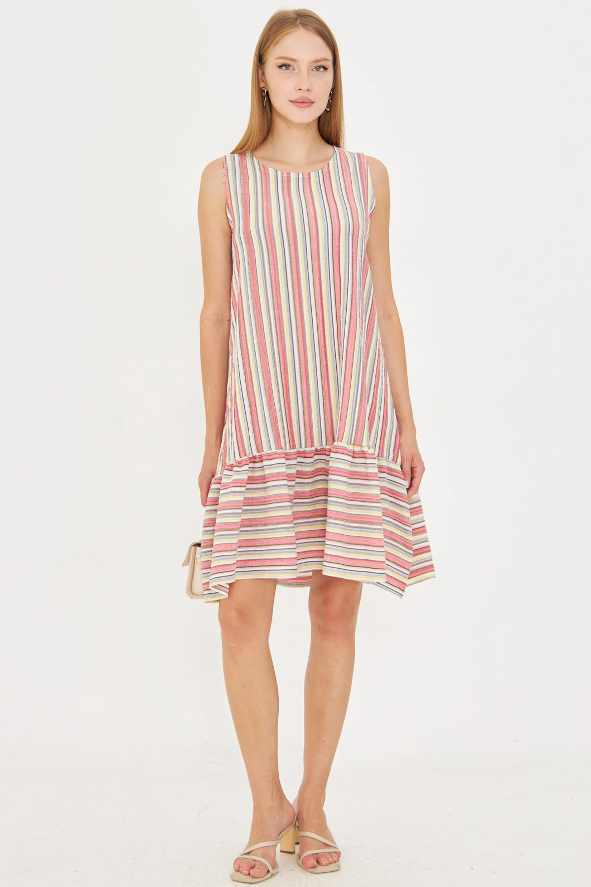 فستان ميدي من نسيج محبوك مع شراشيب عند الحافة بخامة ناعمة يعطيك لوك يومي مريح ودافئ.
