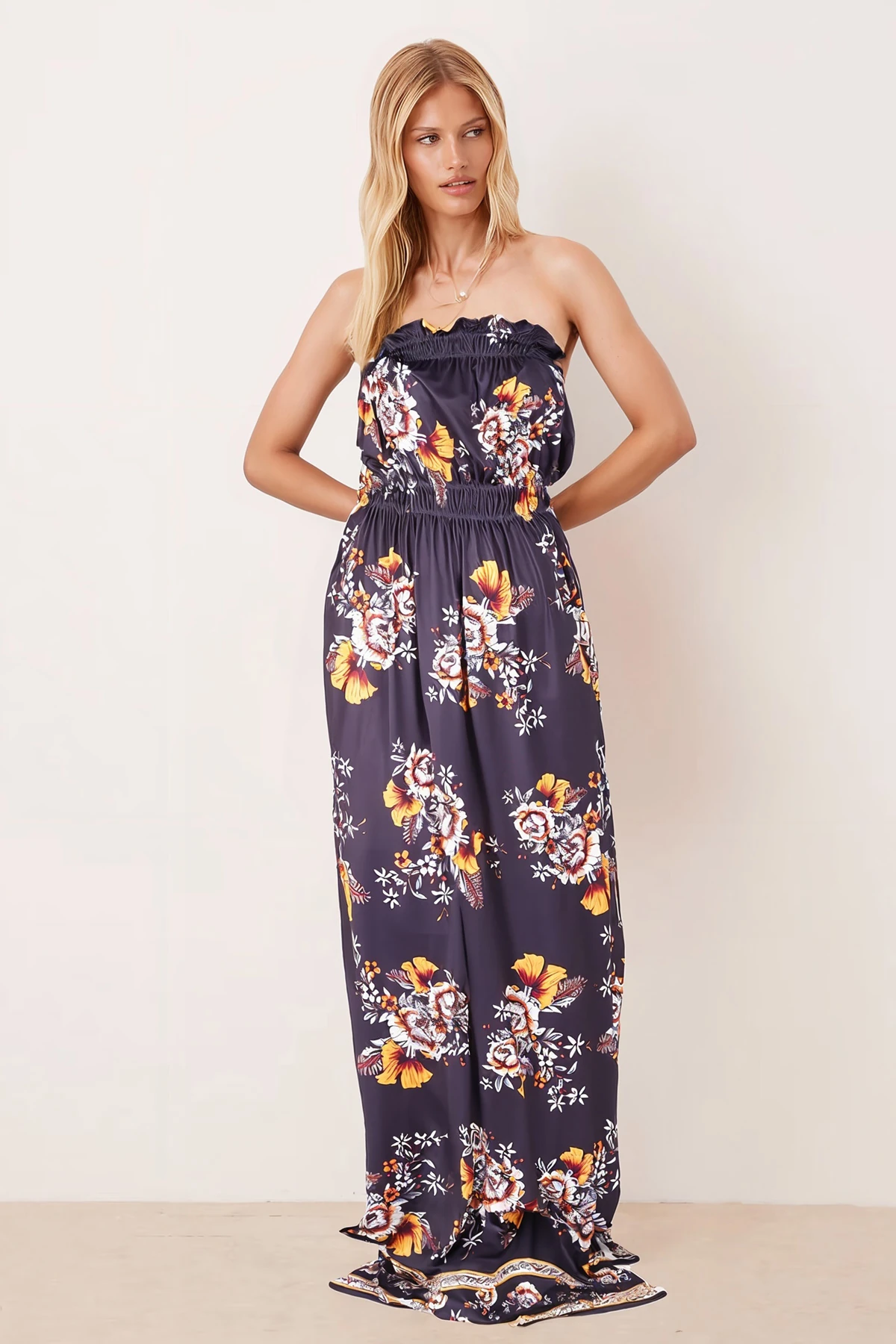 فستان قصير مزهر بياقة V وتفصيل كشكش وقصة A للنساء - Beyond Store