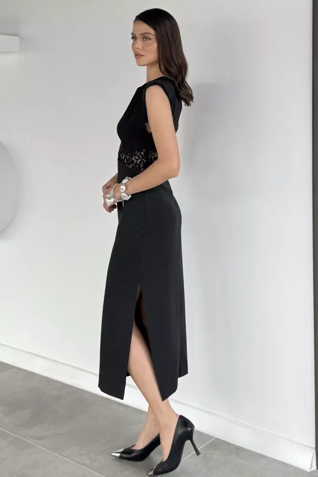 فستان طويل تريند بحمالات عريضة وياقة مجمعة مع كشكش بطبقات يعطيك لوك يومي شيك ومريح للصيف.