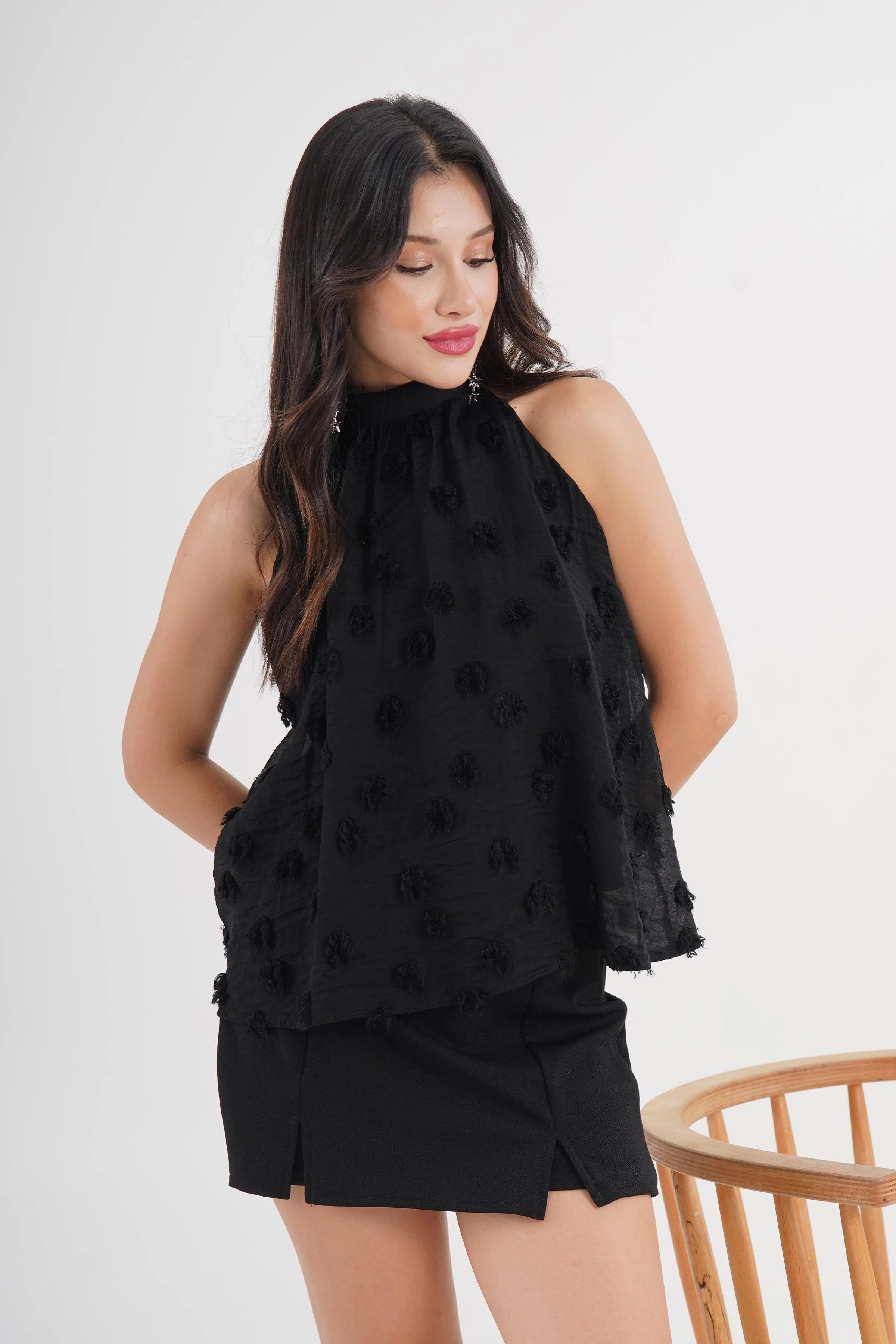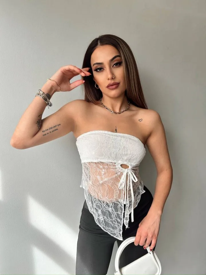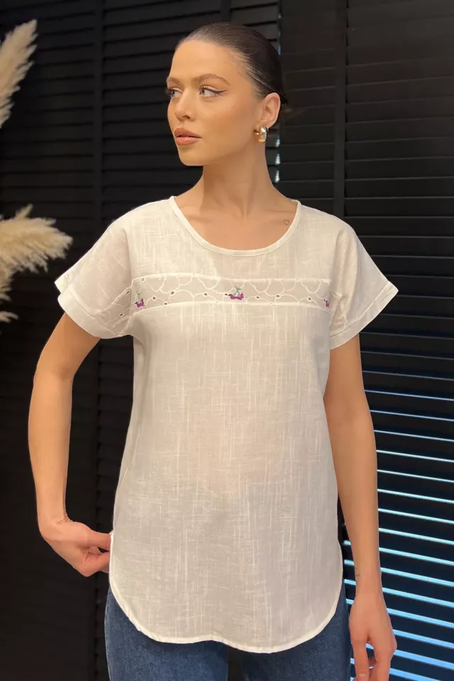 بلوزة ستايل عصري بياقة غير متماثلة مع درز جانبي وفتحة اسفل التصميم تعطي لوك انيق ومحدد للاطلالات اليومية.