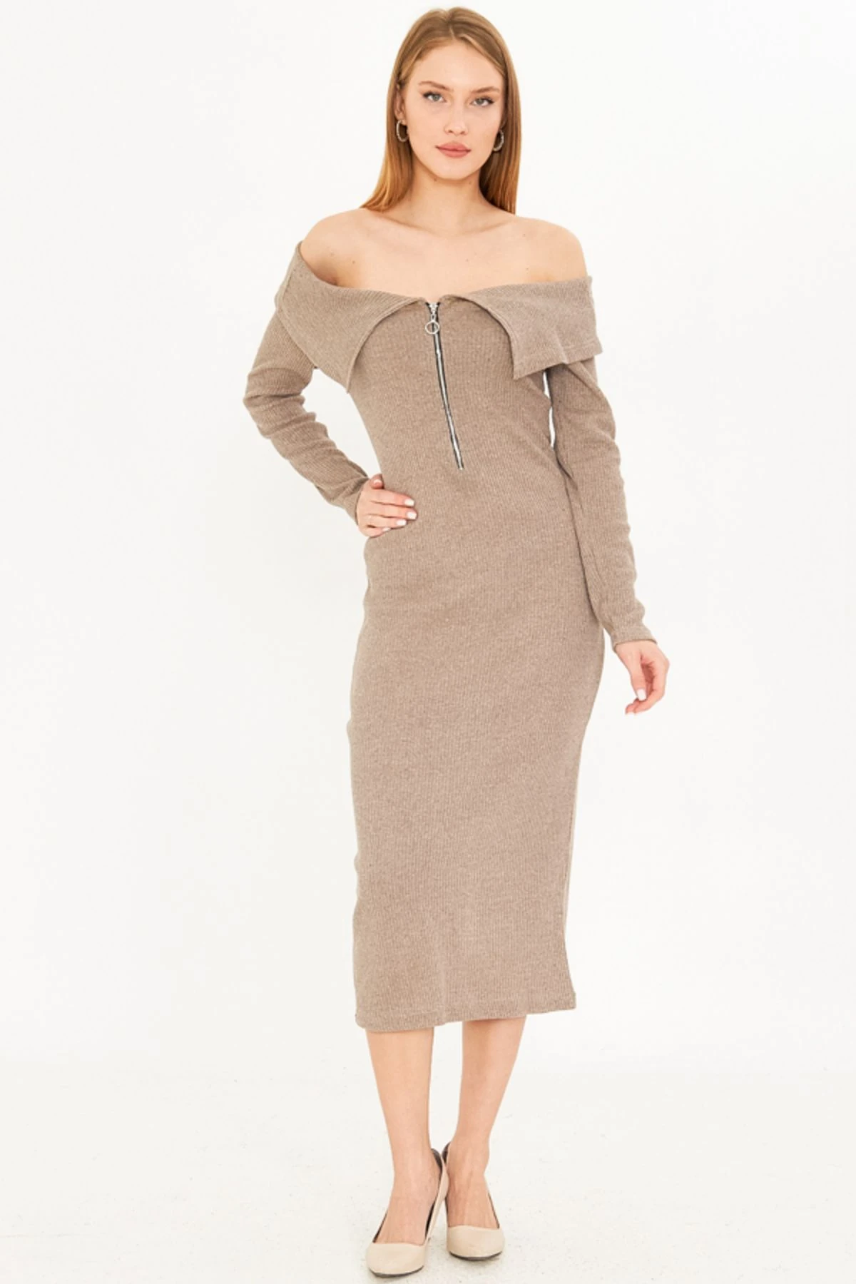 فستان ميدي بأكمام خفاش وخصر مرن وجيوب للنساء - Beyond Store