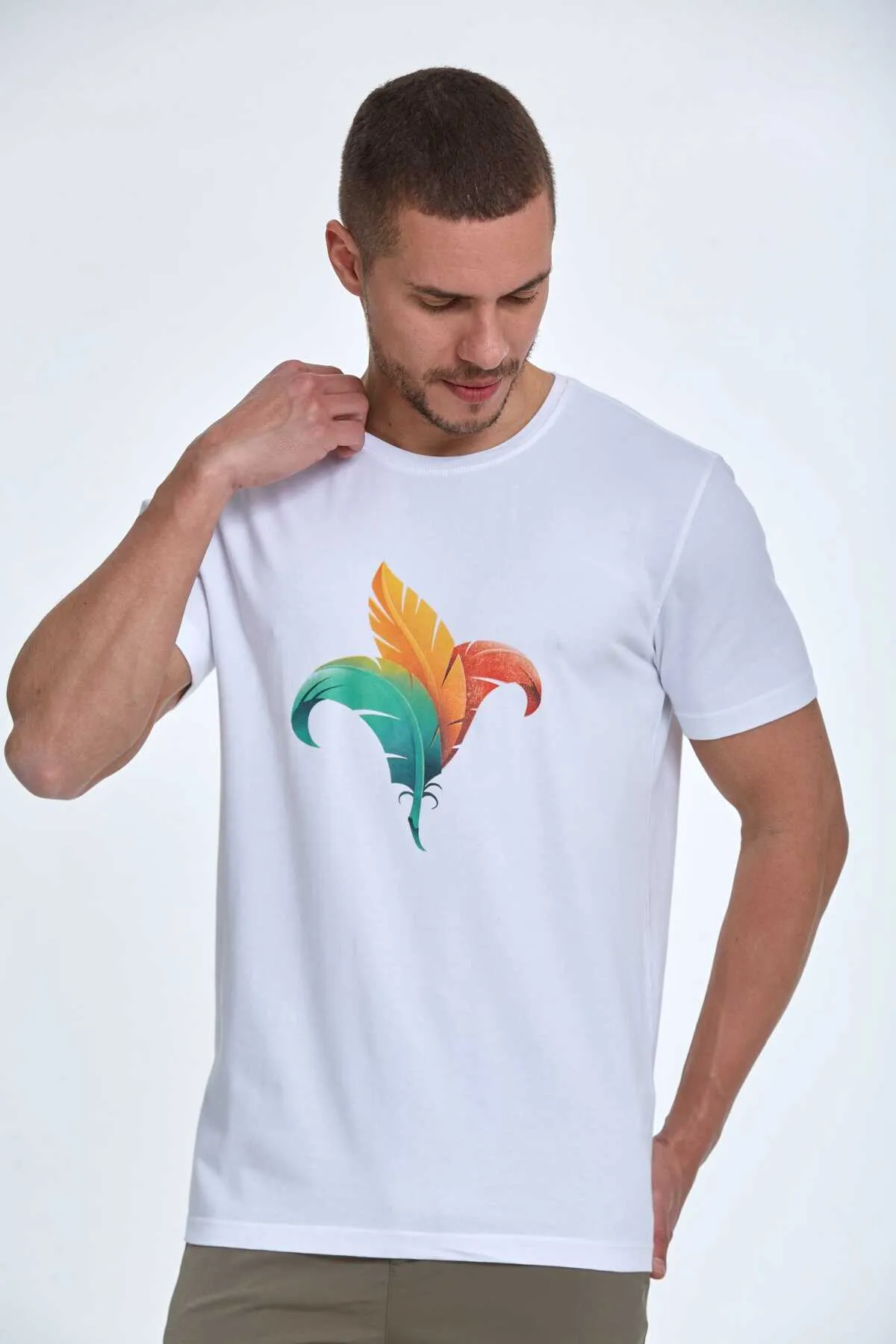 تيشيرت رجالي كاجوال سادة بأكمام قصيرة وقصة واسعة وغطاء رأس - Beyond Store