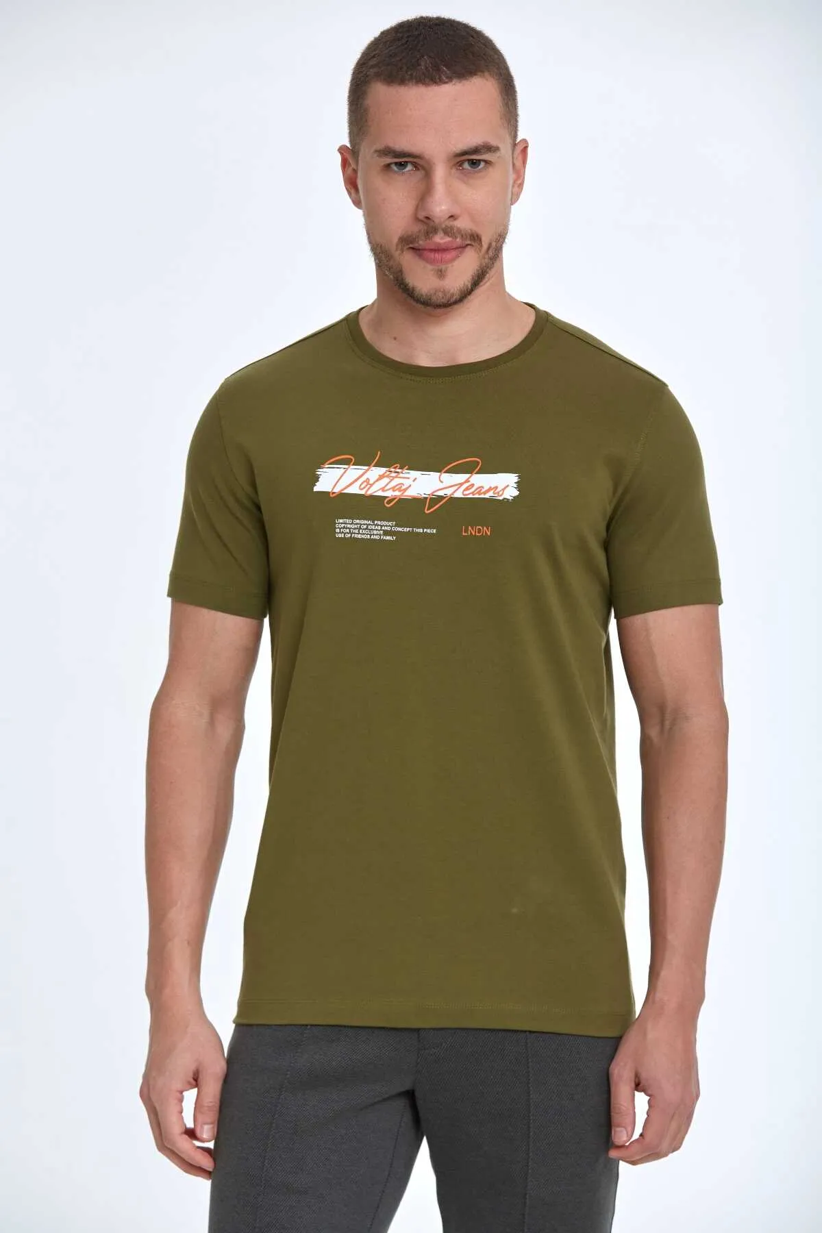 تي شيرت رجالي قطني بياقة دائرية