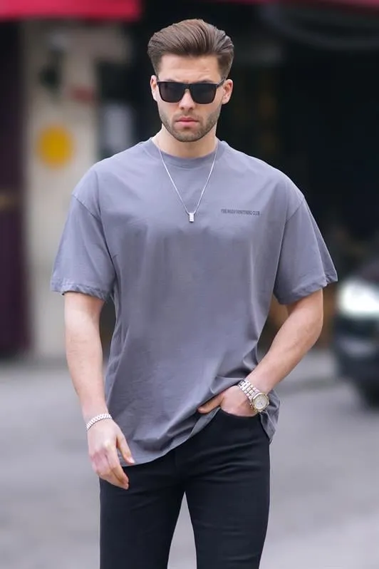 تي شيرت رجالي مطبوع بأكمام قصيرة وأكتاف منسدل..