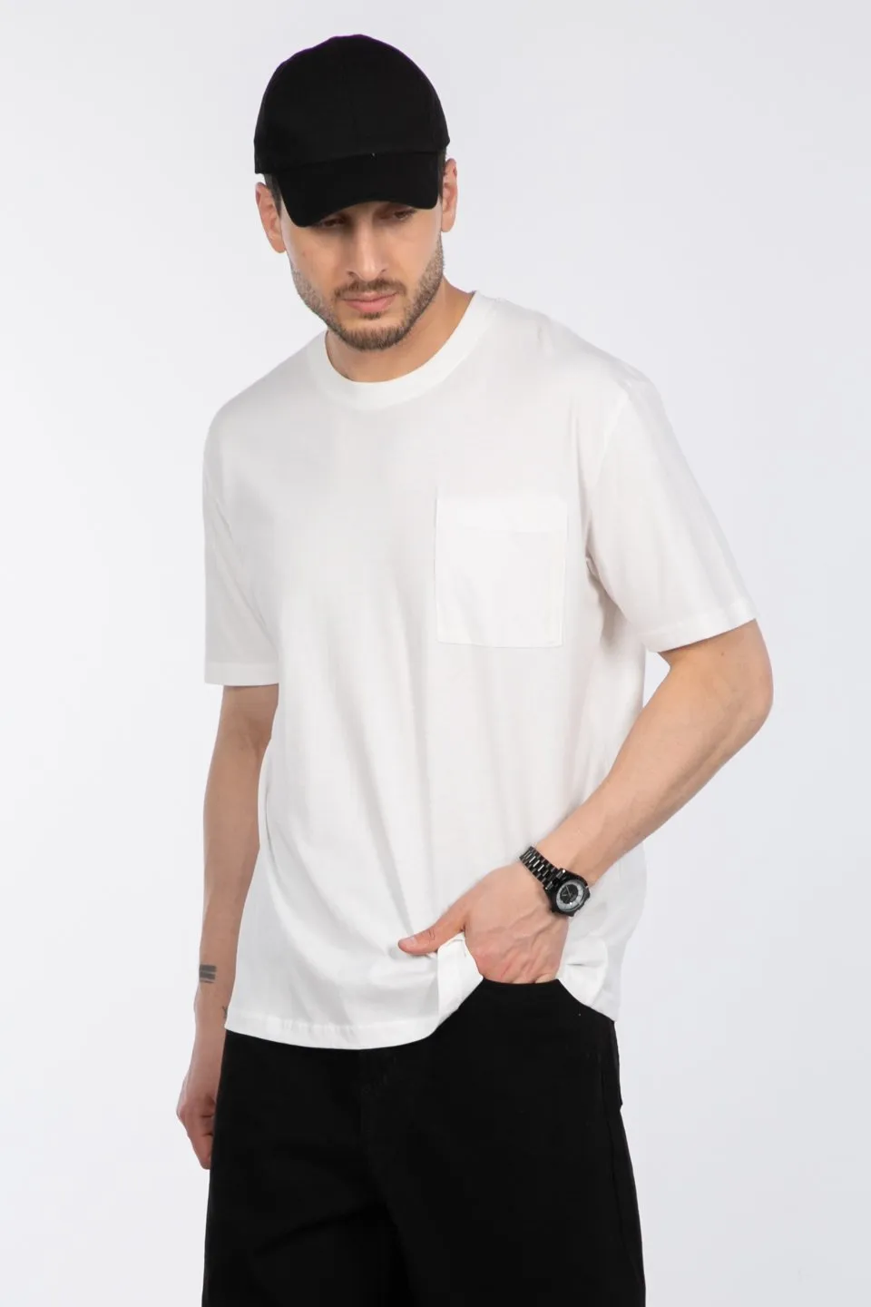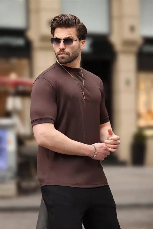 تي شيرت سادة بياقة دائرية وأكمام قصيرة للرجال