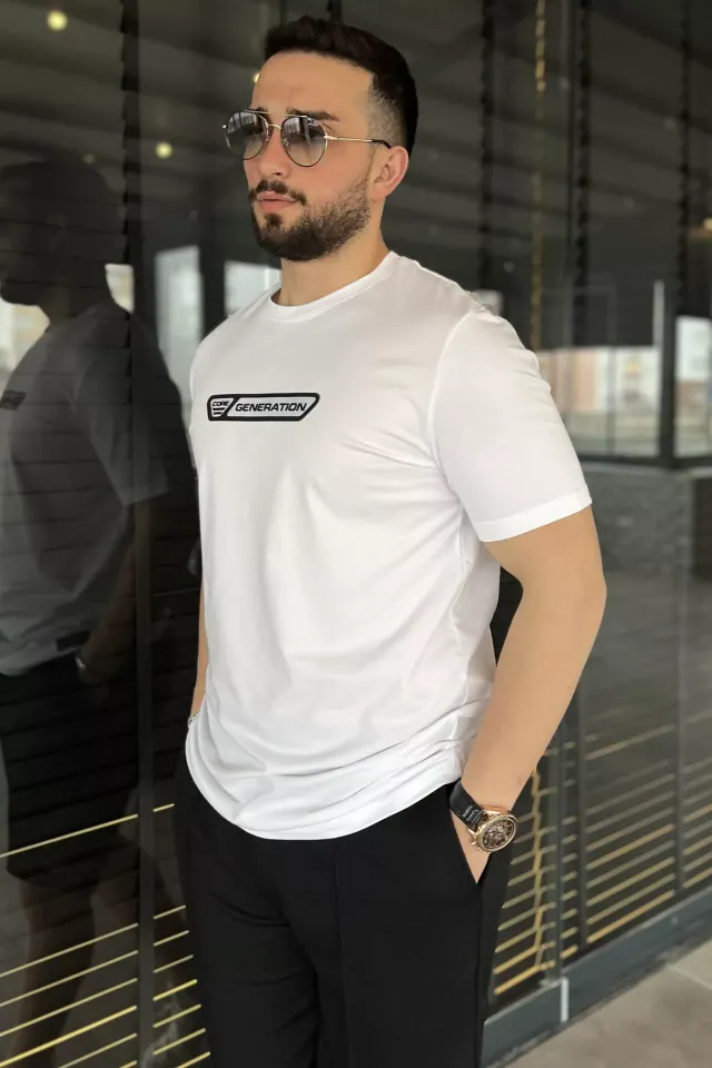 تي شيرت مطبوع بياقة دائرية للرجال