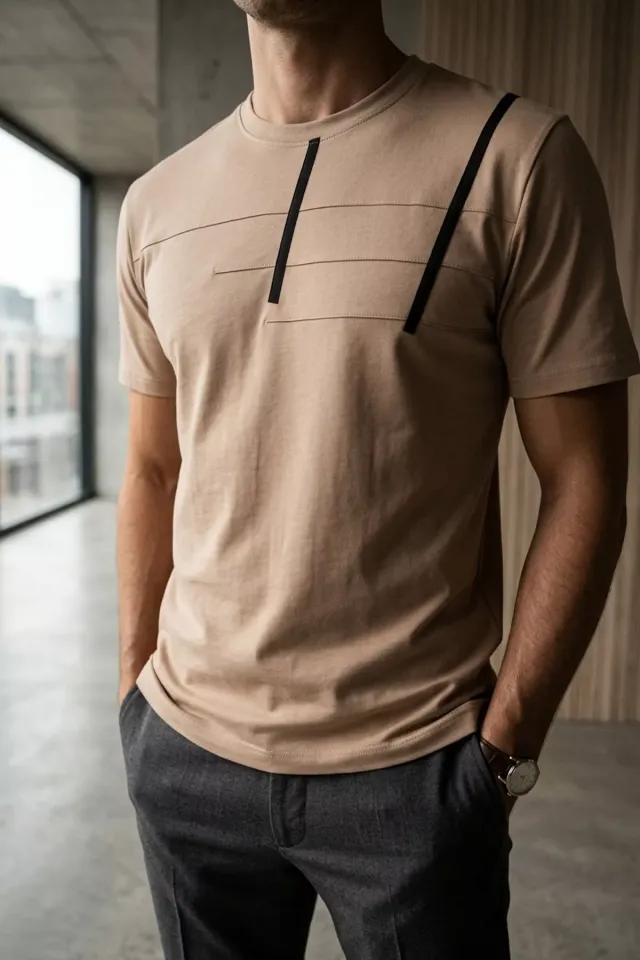 تيشيرت رجالي كاجوال سادة بأكمام قصيرة وقصة وا..