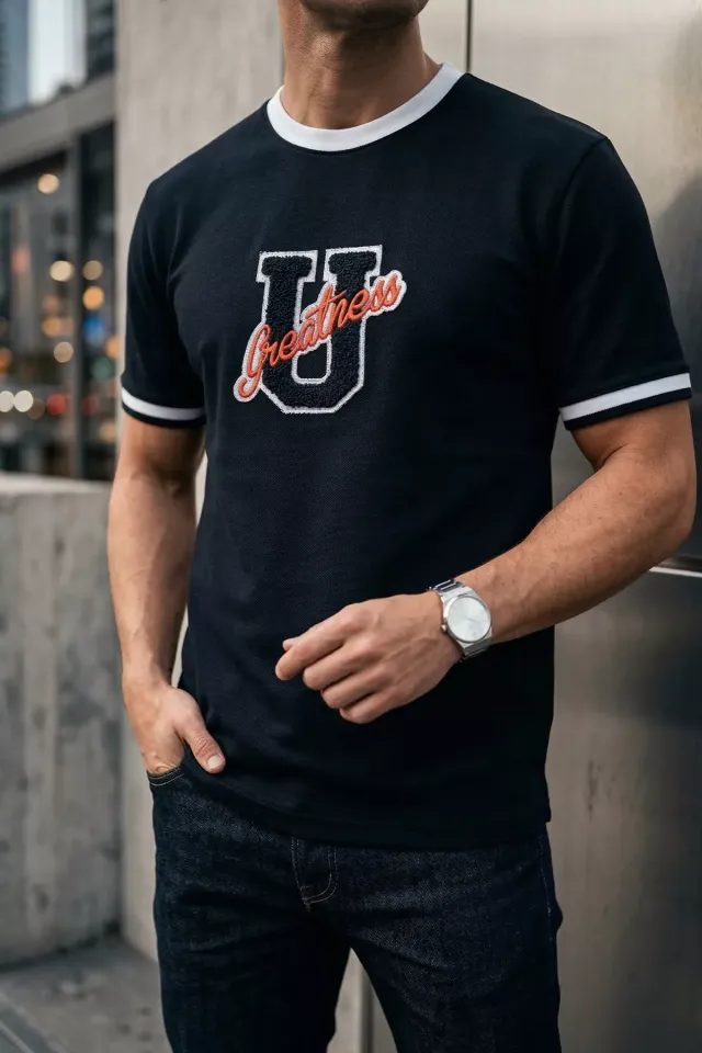 تي شيرت منقوش بأكمام قصيرة وياقة بولو للرجال