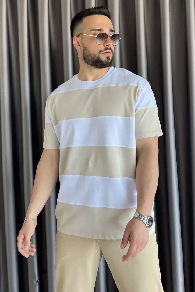 تيشيرت بولو رجالي قطني بنقشة خطوط عملية
