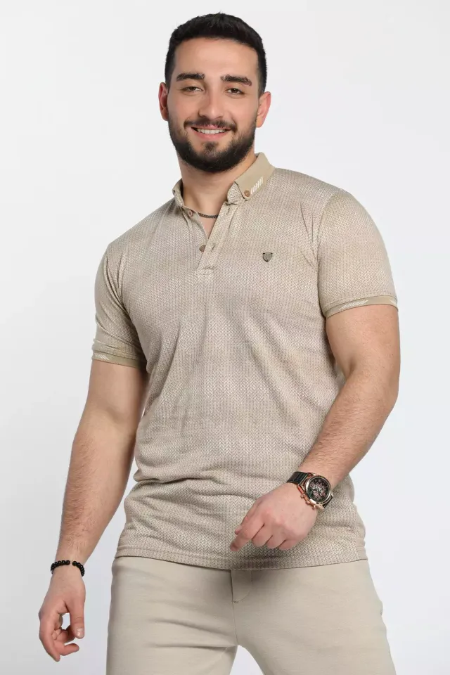 تيشيرت منقوش بياقة بولو بنصف ازرار للرجال