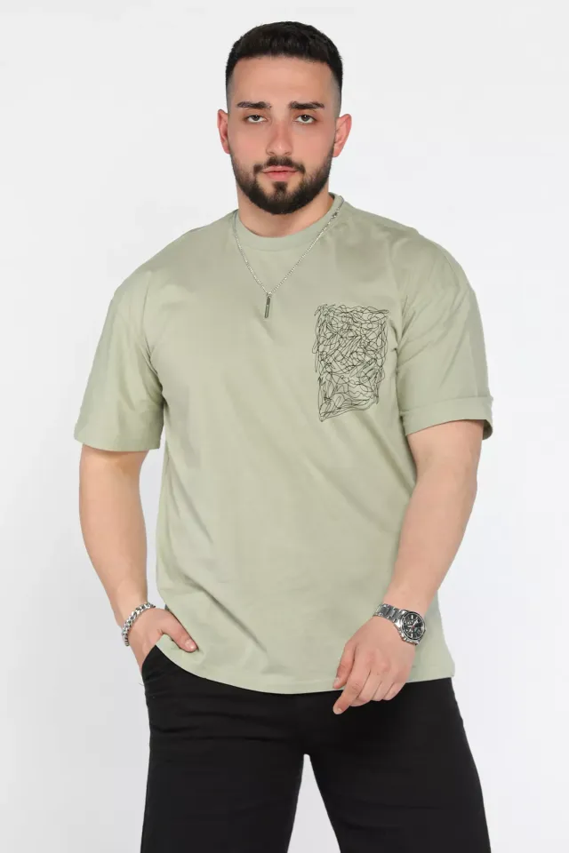 تيشيرت رجالي فضفاض بطبعة حروف وياقة مستديرة