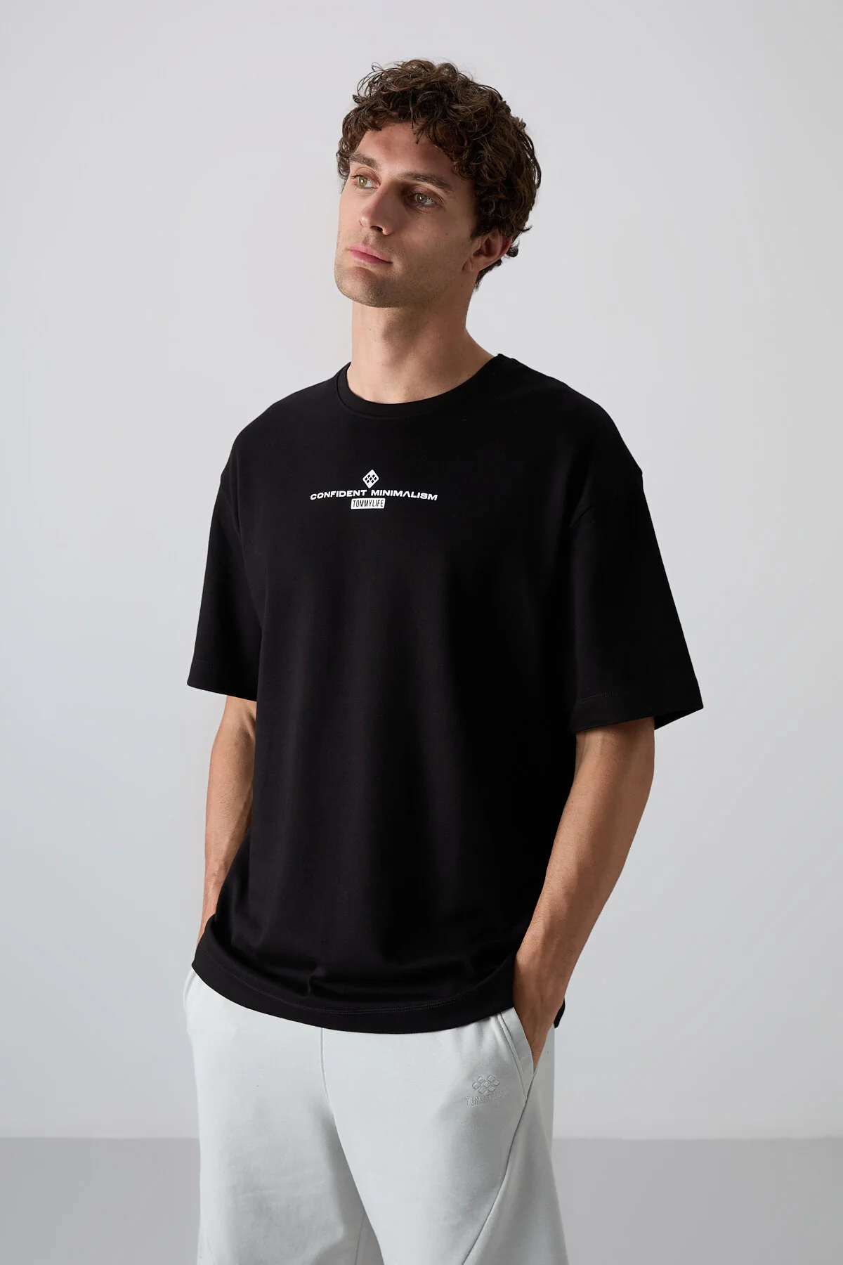 تيشيرت رجالي كاجوال سادة بأكمام قصيرة وقصة واسعة وغطاء رأس - Beyond Store