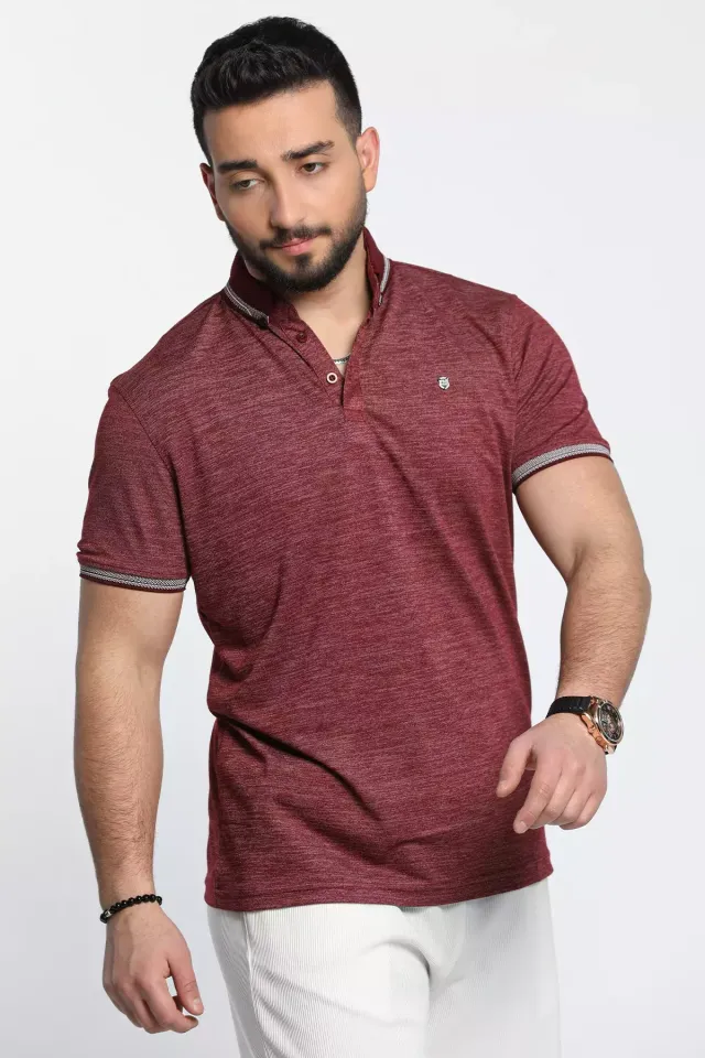 تيشيرت منقوش بياقة بولو بنصف ازرار للرجال