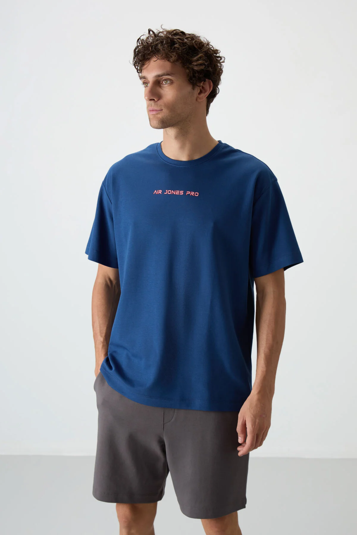 تي شيرت رياضي مطبوع بياقة دائرية وأكمام قصيرة..