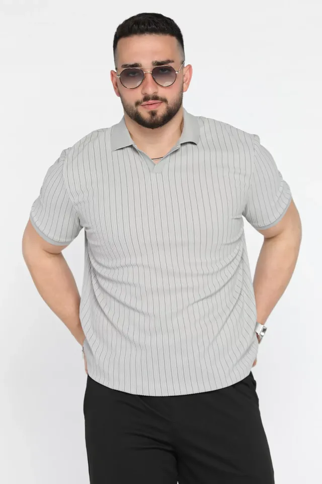 تي شيرت مضلع بأكمام قصيرة وياقة بولو للرجال