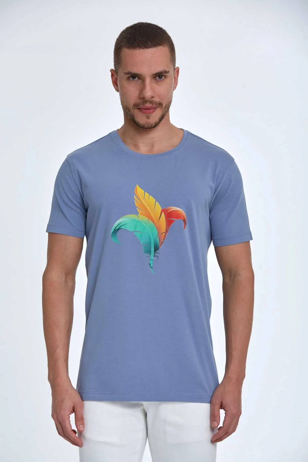 تي شيرت رجالي أساسي مطبوع بياقة دائرية