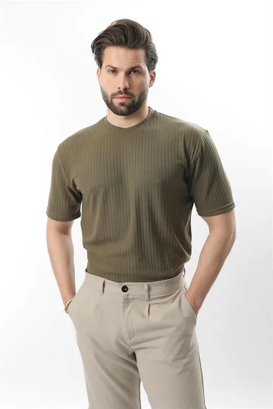 تي شيرت مضلع رجالي مريح بأكمام قصيرة وياقة دا..