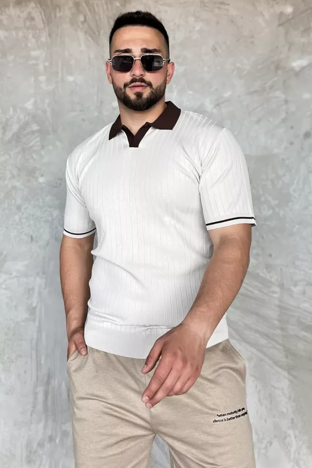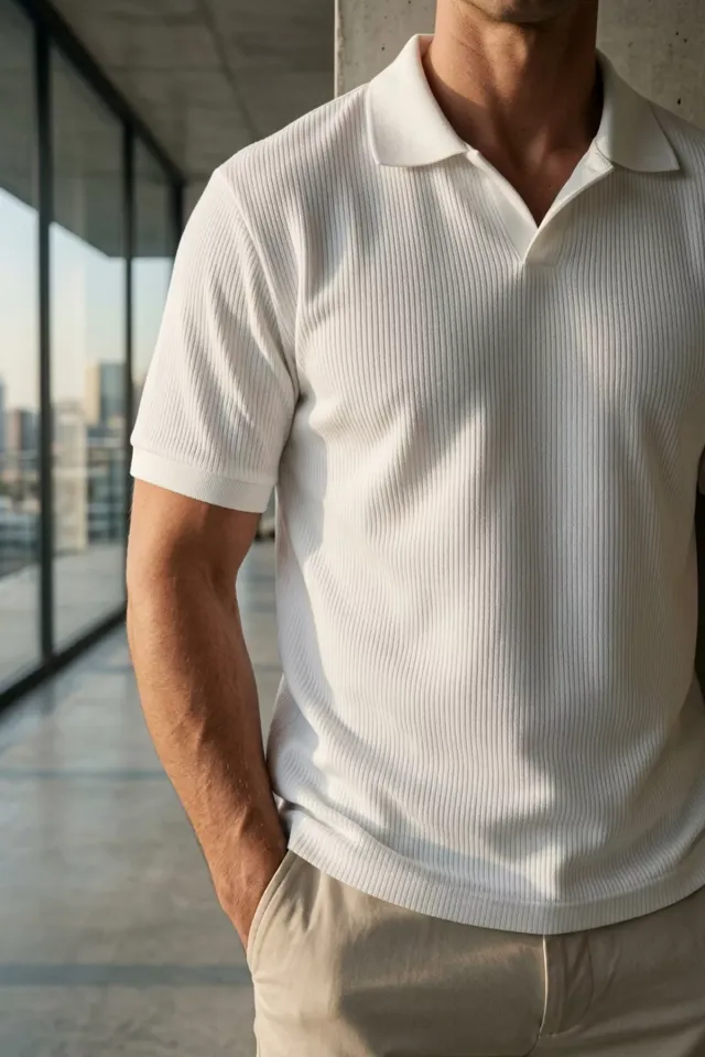 تيشيرت رجالي بولو محبوك بنقشة خطوط خفيفة ومزي..
