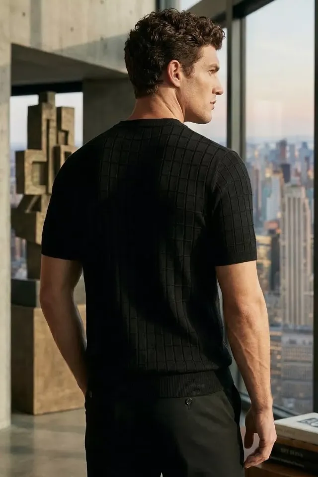 تيشيرت رجالي كاجوال بنقشة مربعات بأكمام قصيرة..