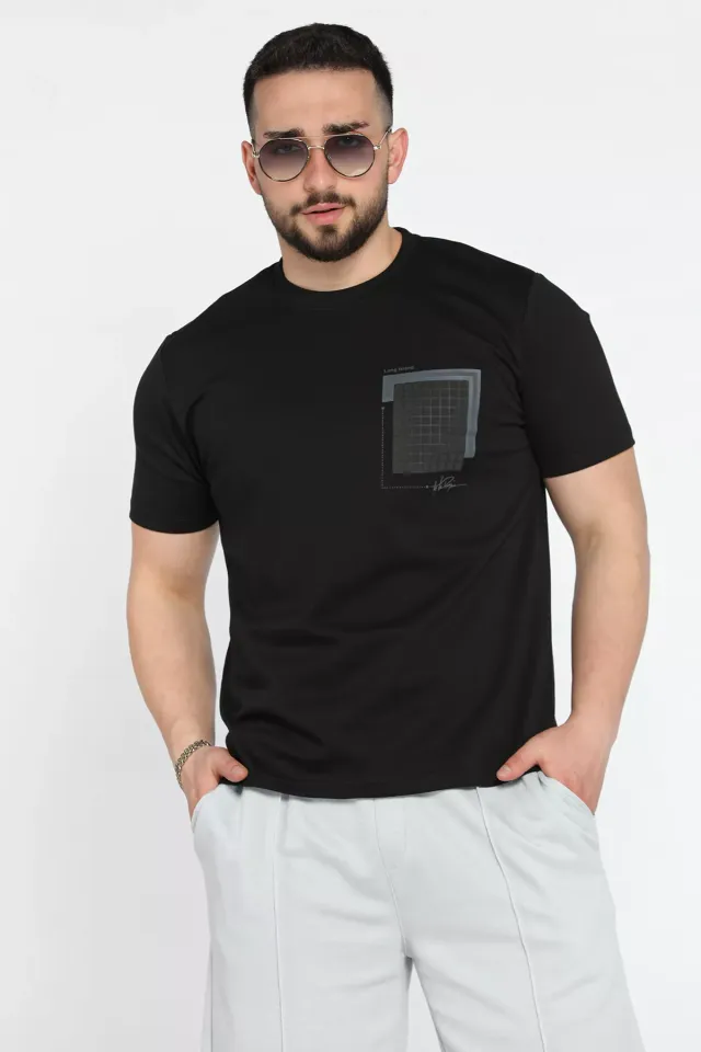 تي شيرت رجالي مطبوع برقبة دائرية