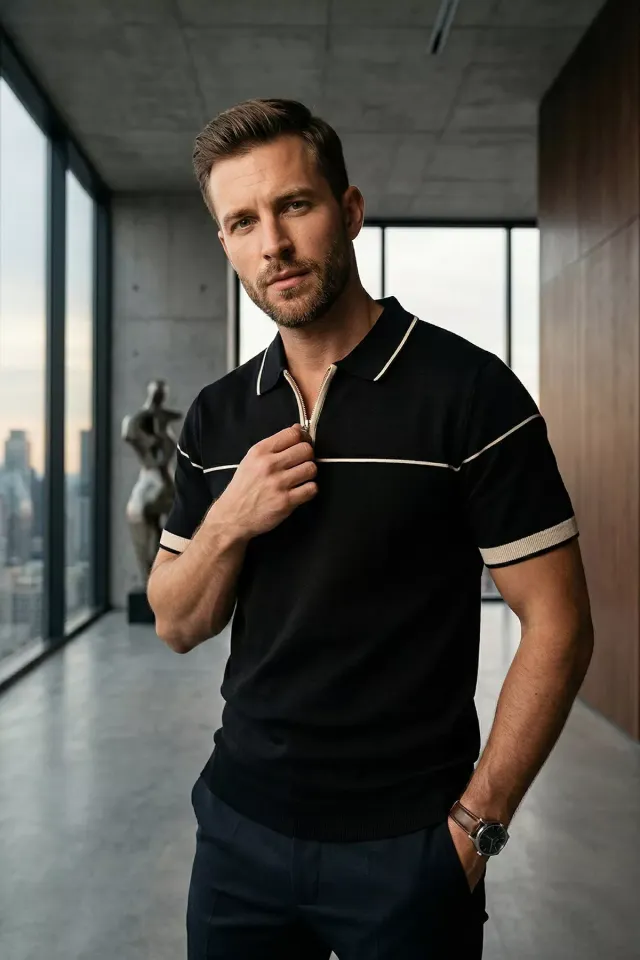 تي شيرت رجالي كاجوال بأكمام قصيرة وياقة بولو ..