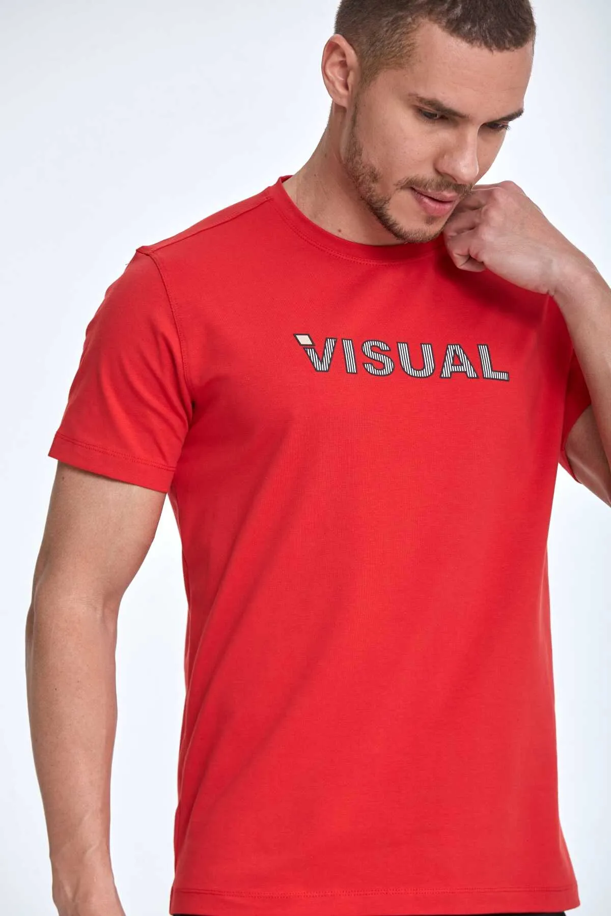 تي شيرت قطني بياقة دائرية وطبعة حروف للرجال