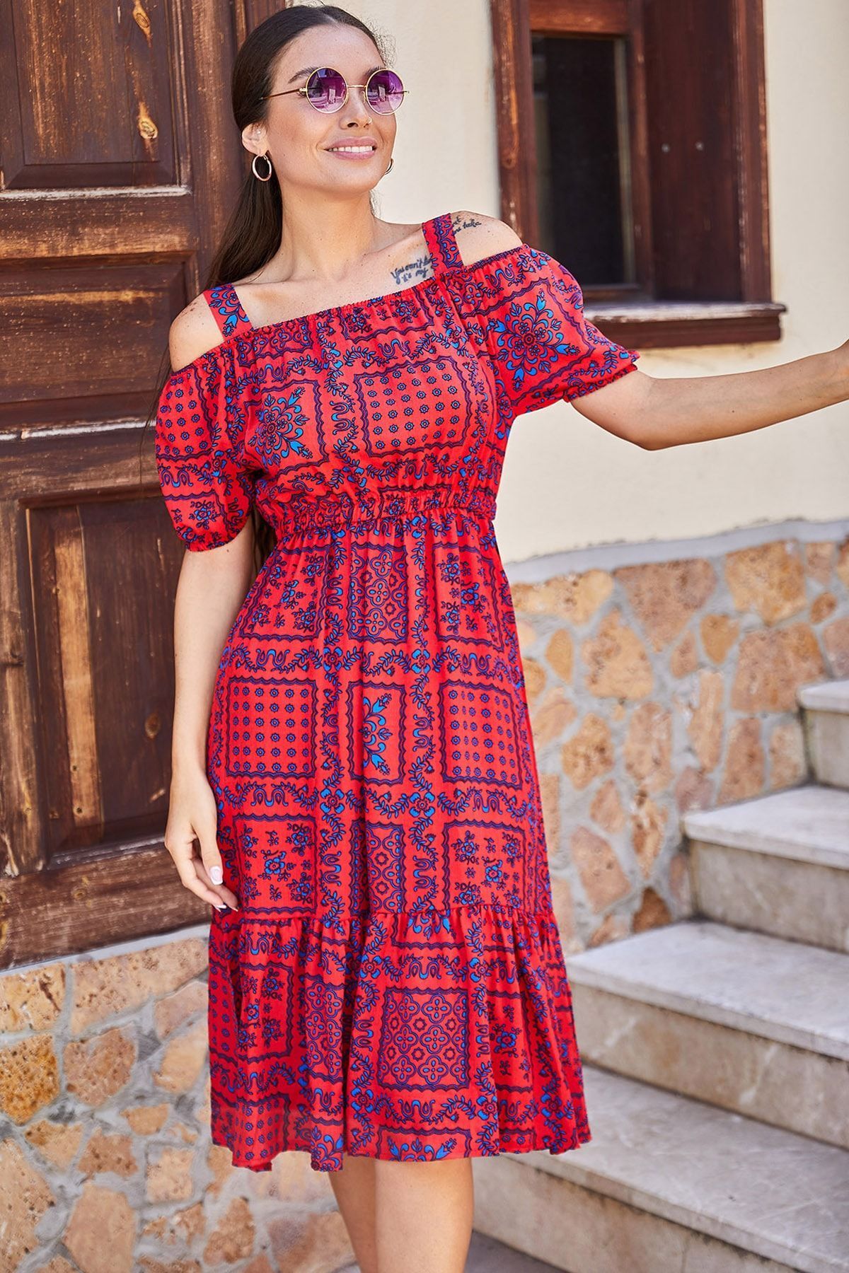 • نوع الياقة : مكشوف الكتفين