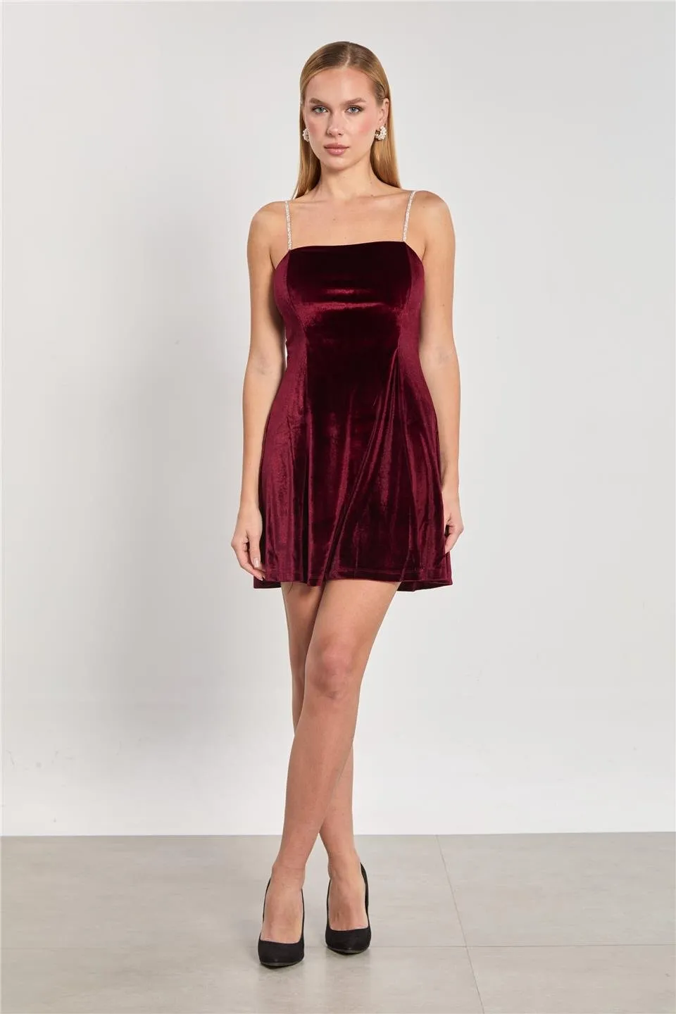 الموديل ترتدي مقاس XS – الطول 160 سم، الوزن 50 كغ، الصدر 80 سم، الخصر 62 سم، الورك 94 سم