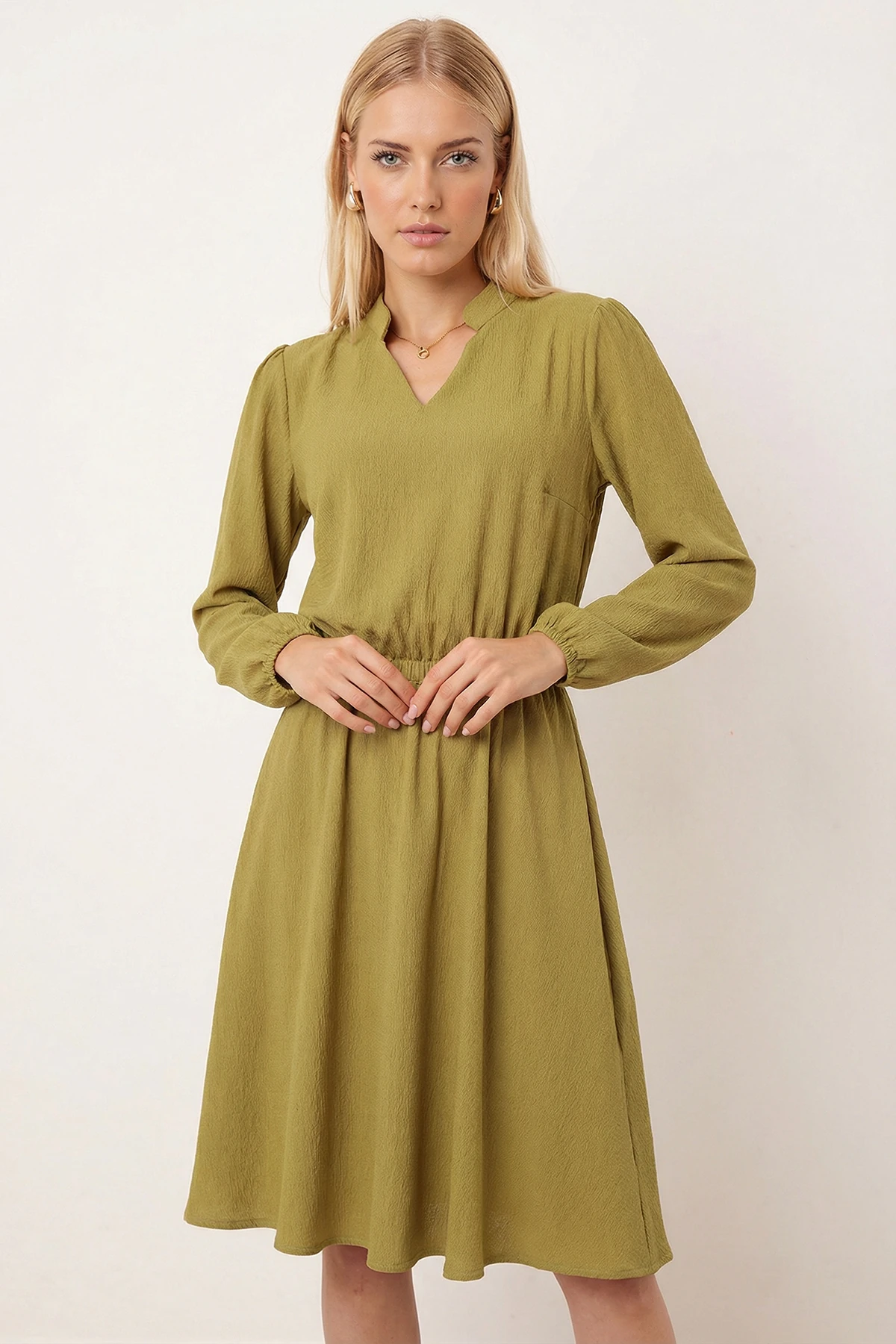 الموديل ترتدي مقاس XS – الطول 160 سم، الوزن 50 كغ، الصدر 80 سم، الخصر 62 سم، الورك 94 سم