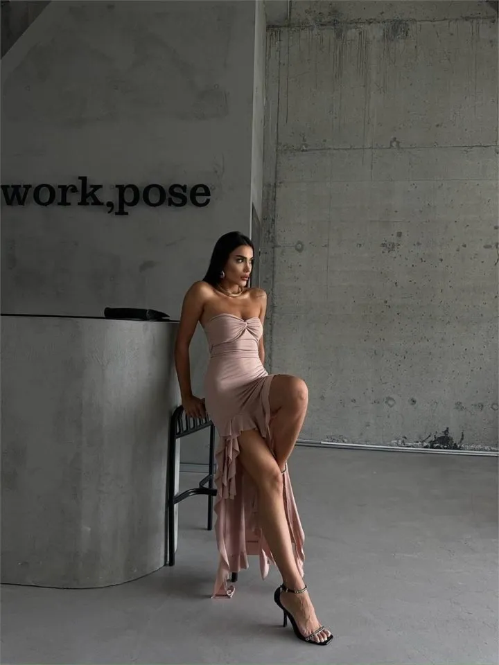 الموديل ترتدي مقاس XS – الطول 160 سم، الوزن 50 كغ، الصدر 80 سم، الخصر 62 سم، الورك 94 سم