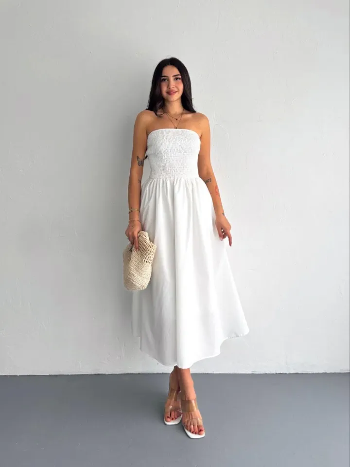 فستان قصير بنقشة مخططة مع خصر كورسيه يعطي قصة محددة ولوك شيك يومي مميز.