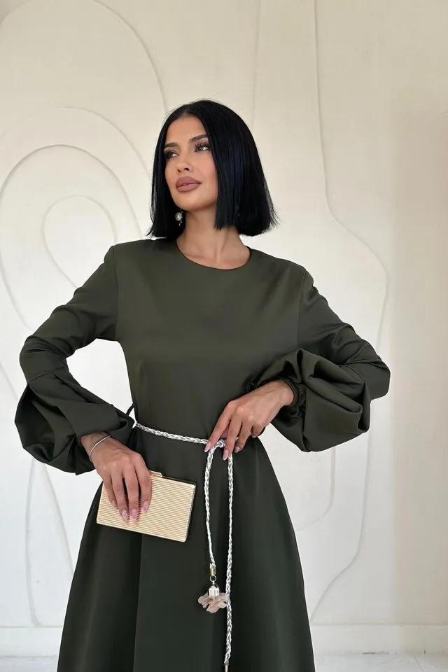 الموديل ترتدي مقاس S – الطول 174 سم، الصدر 78 سم، الخصر 61 سم، الورك 93 سم