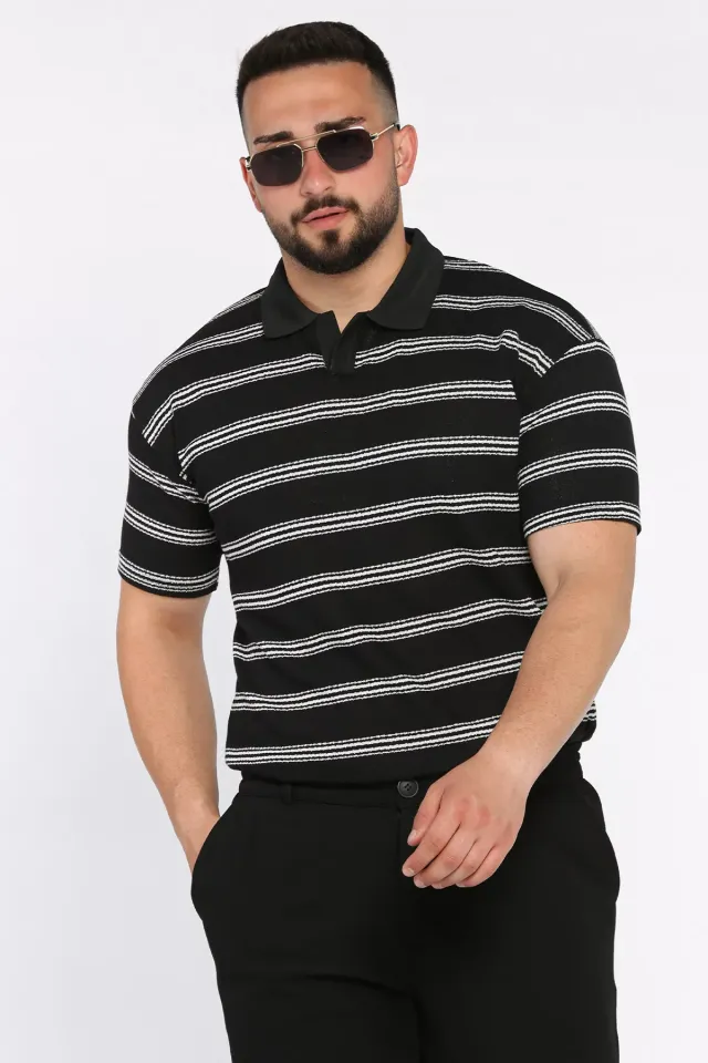 تيشيرت بولو رجالي قطني بنقشة خطوط عملية
