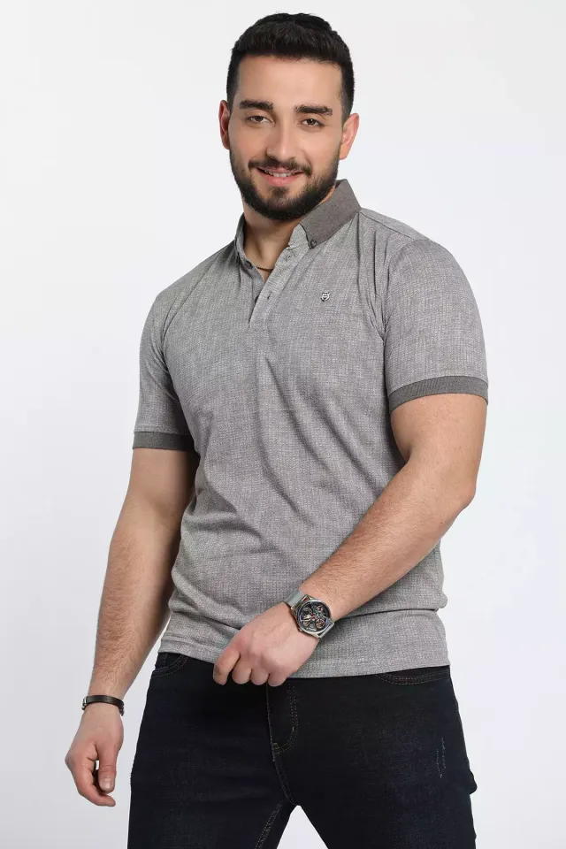 تيشيرت منقوش بياقة بولو بنصف ازرار للرجال