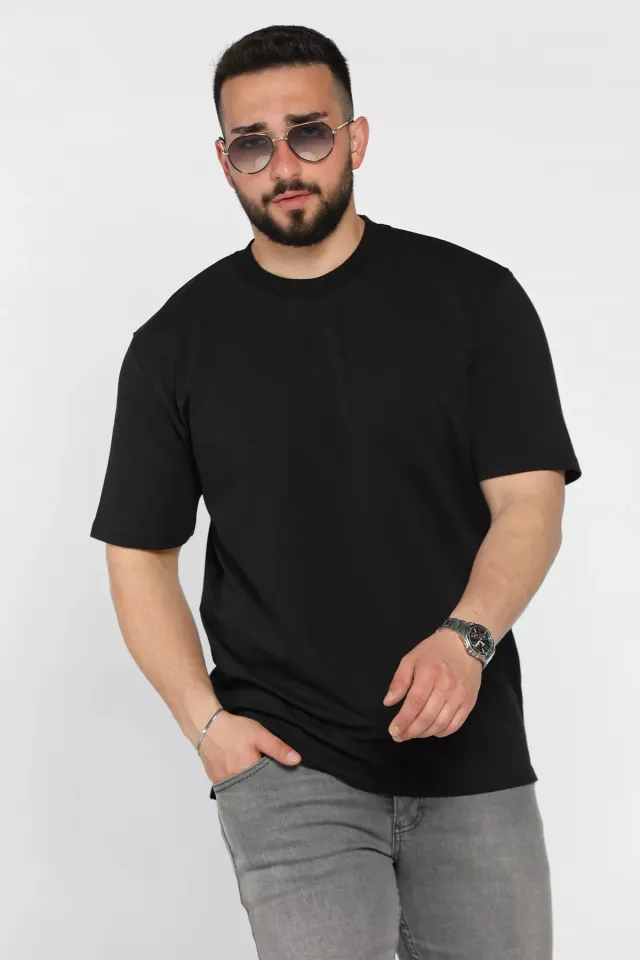 تي شيرت رجالي سادة بياقة دائرية وأكمام قصيرة