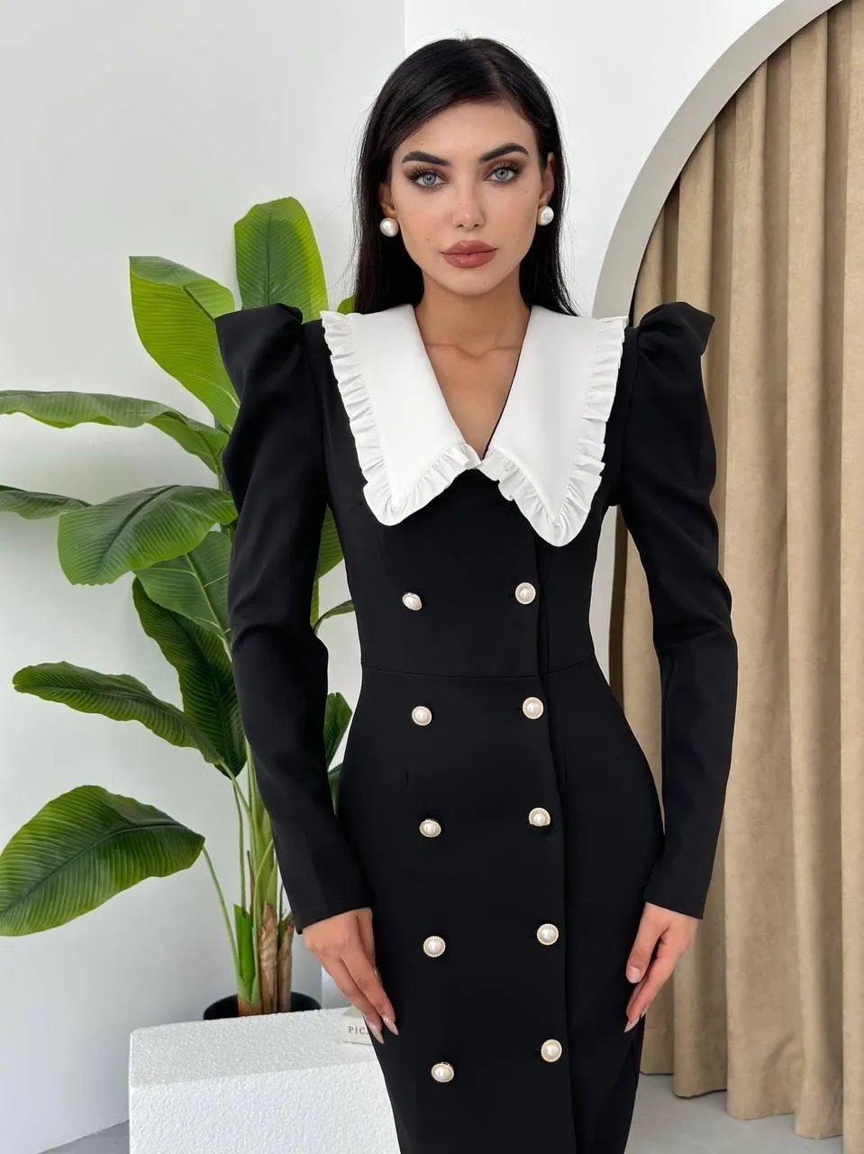 فستان قصير كيوت مع تفاصيل مُجمّعة وقصة محددة يعطي ستايل عصري وأنثوي مناسب للاستخدام اليومي والسهرات.