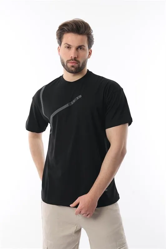 تي شيرت رجالي مطبوع بقصّة مريحة وأكتاف منسدلة..