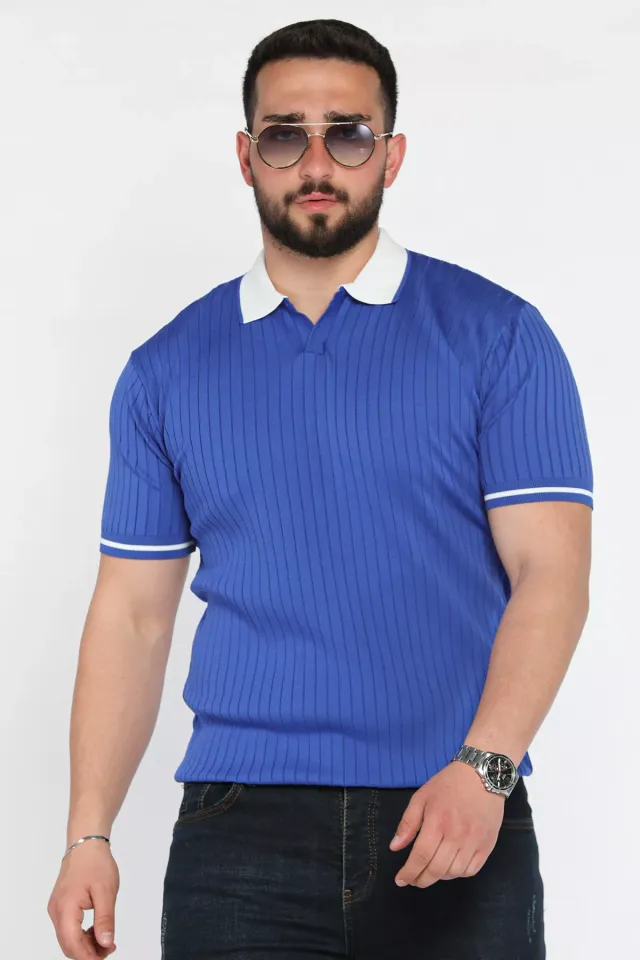 تي شيرت رجالي أساسي بأكمام قصيرة وياقة بولو م..
