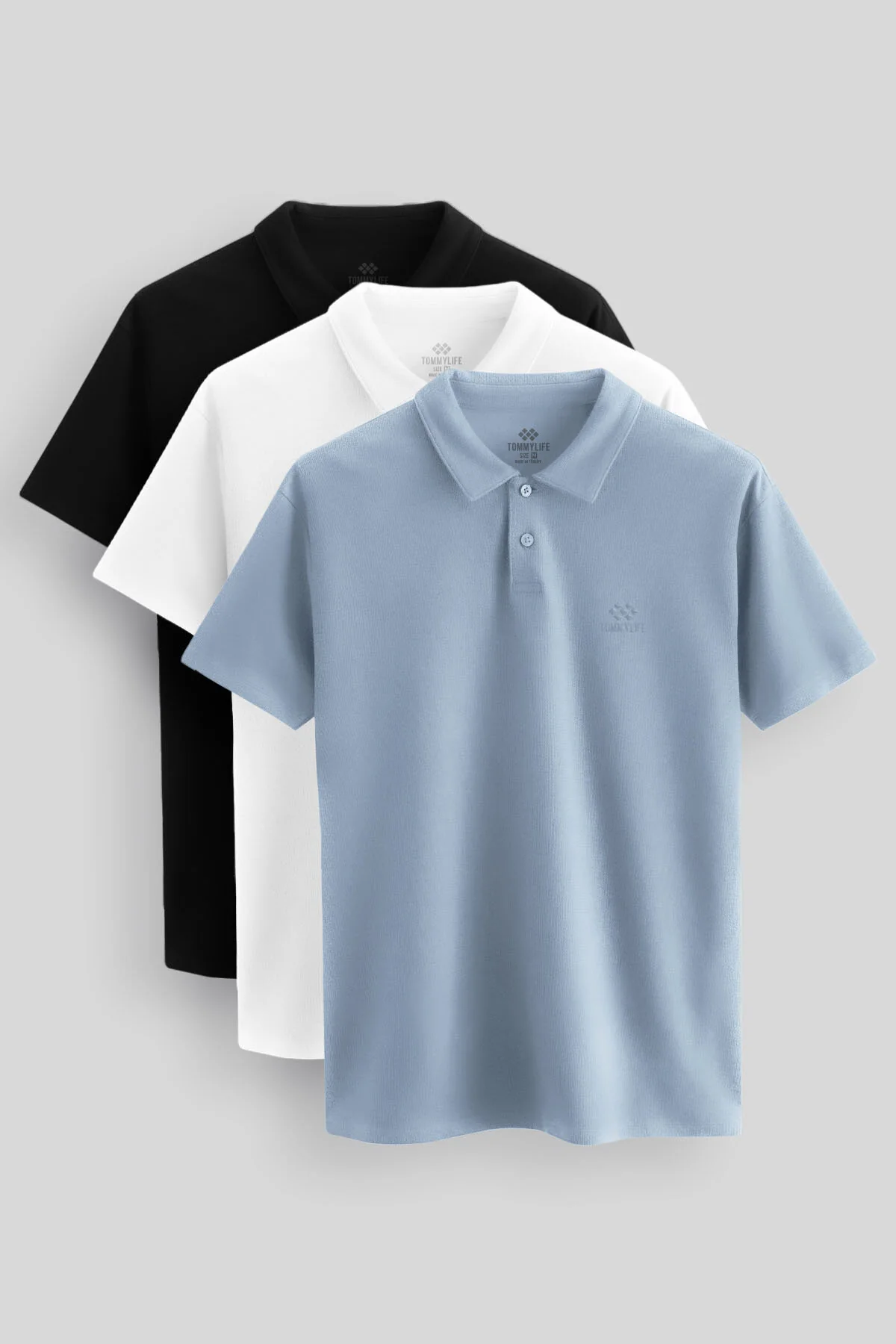تي شيرت بولو رجالي مخطط أساسي بأزرار